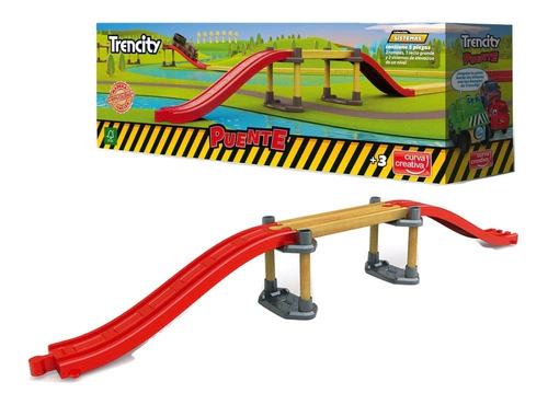 El sistema Puente tiene un largo total de 55 cm. y está compuesto de 5 piezas (2 rampas, 1 recta grande y 2 bloque apilables).