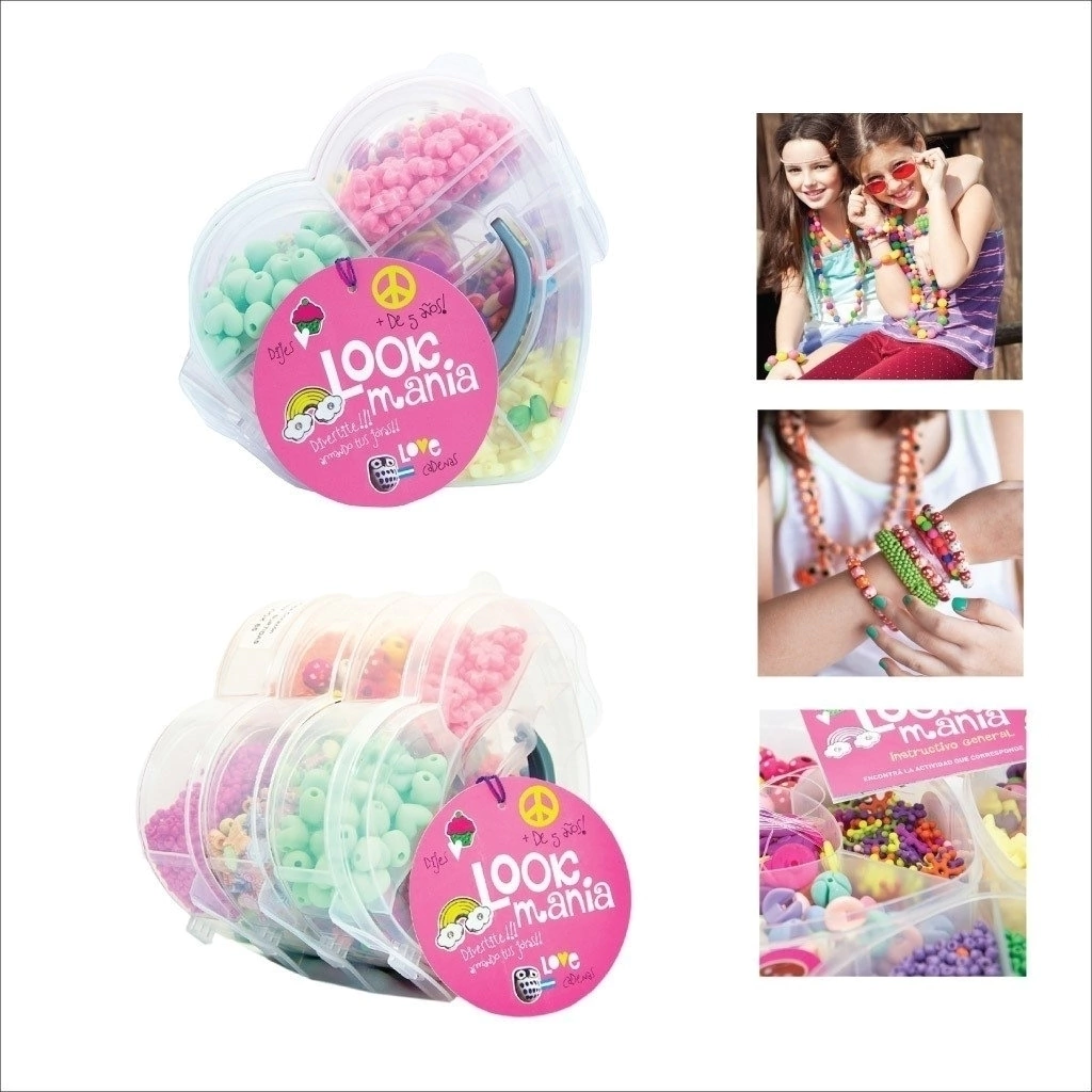 Viene con tanza, mostacillas de plástico, madera y vidrio.